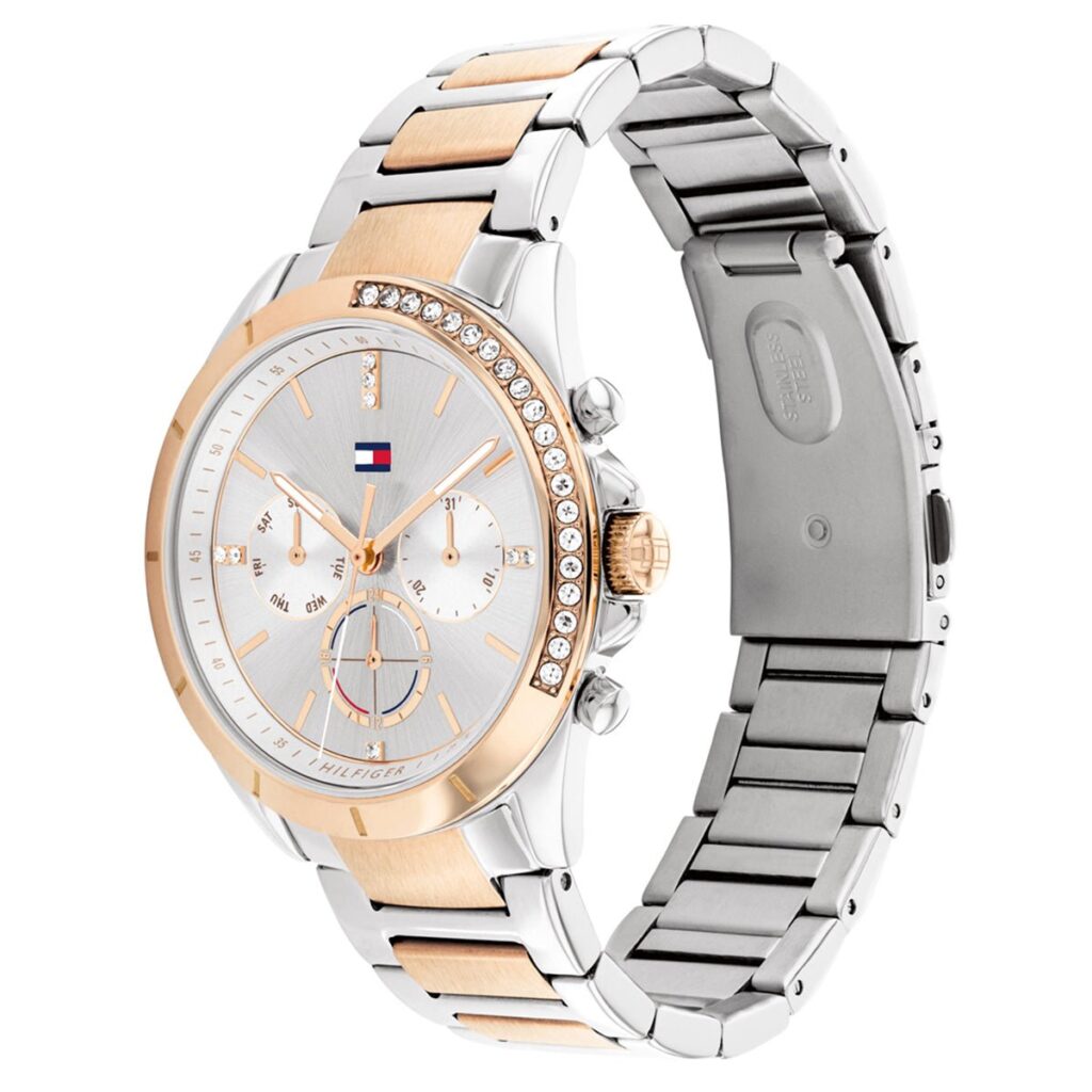 Tommy Hilfiger Kennedy 1782387 is a beautiful and trendy Ladies watch from Sport collection. Case is made out of Stainless Steel, which stands for a high quality of the item and the Silver dial gives the watch that unique look. In regards to the water resistance, the watch has got a resistancy up to 50 metres. It means it can be submerged in water for periods, so can be used for swimming and fishing. It is not recommended for high impact water sports.