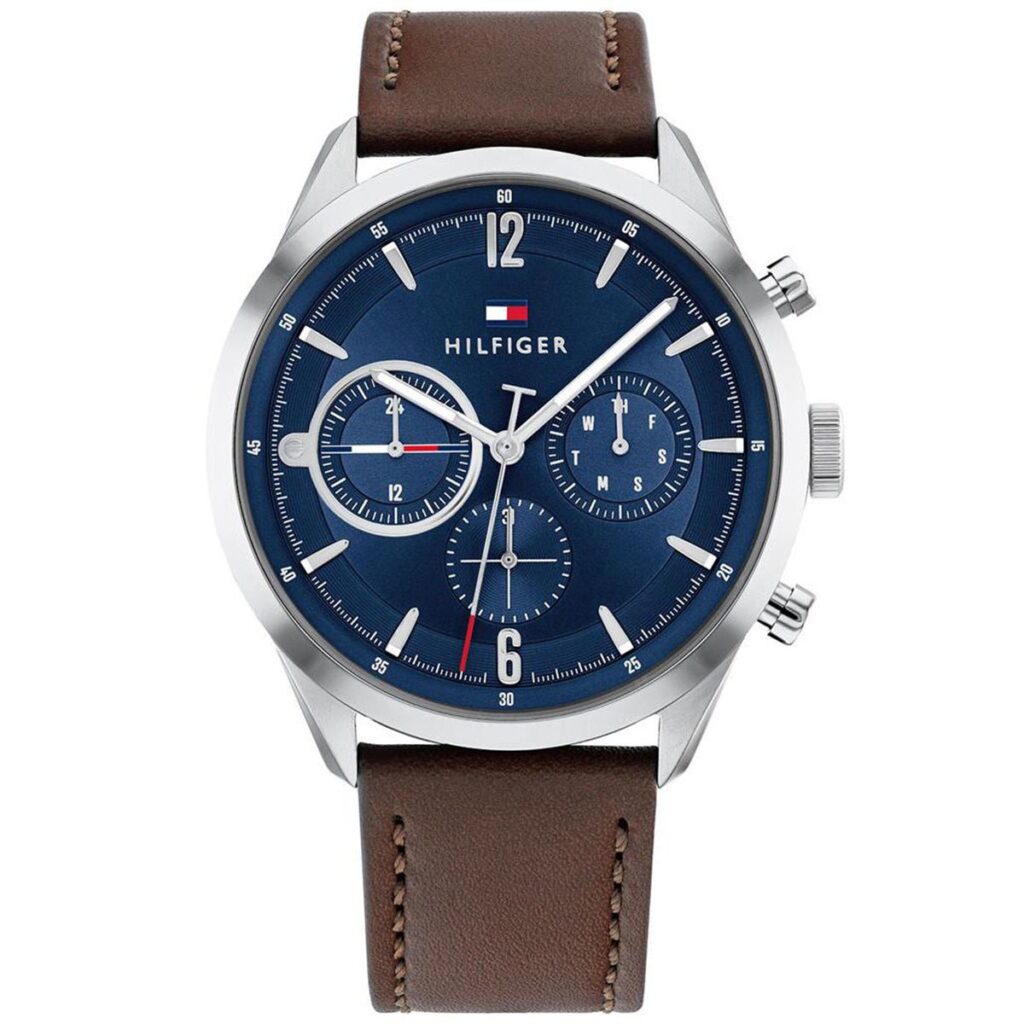 Casually elegant– detailed, bold, confident. Sunray dial with textured reflector ring and branded details throughout. Integrated link bracelets and leather straps, Multifunction movement: 44MM, 5 ATM (9H), date (6H), and weekday sub-eyes (3H).