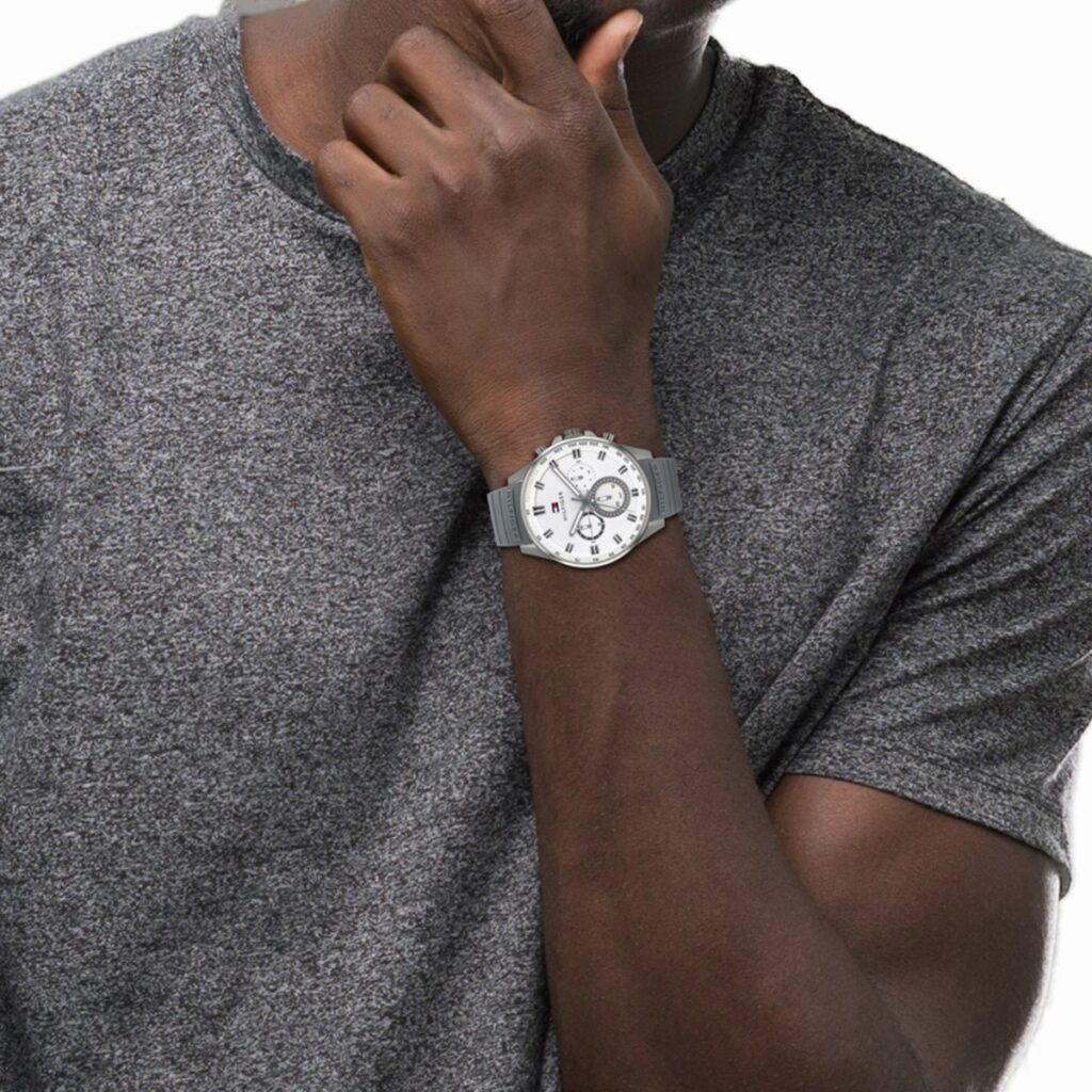 Tommy Hilfiger Max 179.1972 is a practical and handsome Gents watch from Max collection. Material of the case is Plated Stainless Steel while the dial colour is White. In regards to the water resistance, the watch has got a résistance up to 50 meters. It means it can be submerged in water for periods, so can be used for swimming and fishing. It is not recommended for high impact water sports.Â