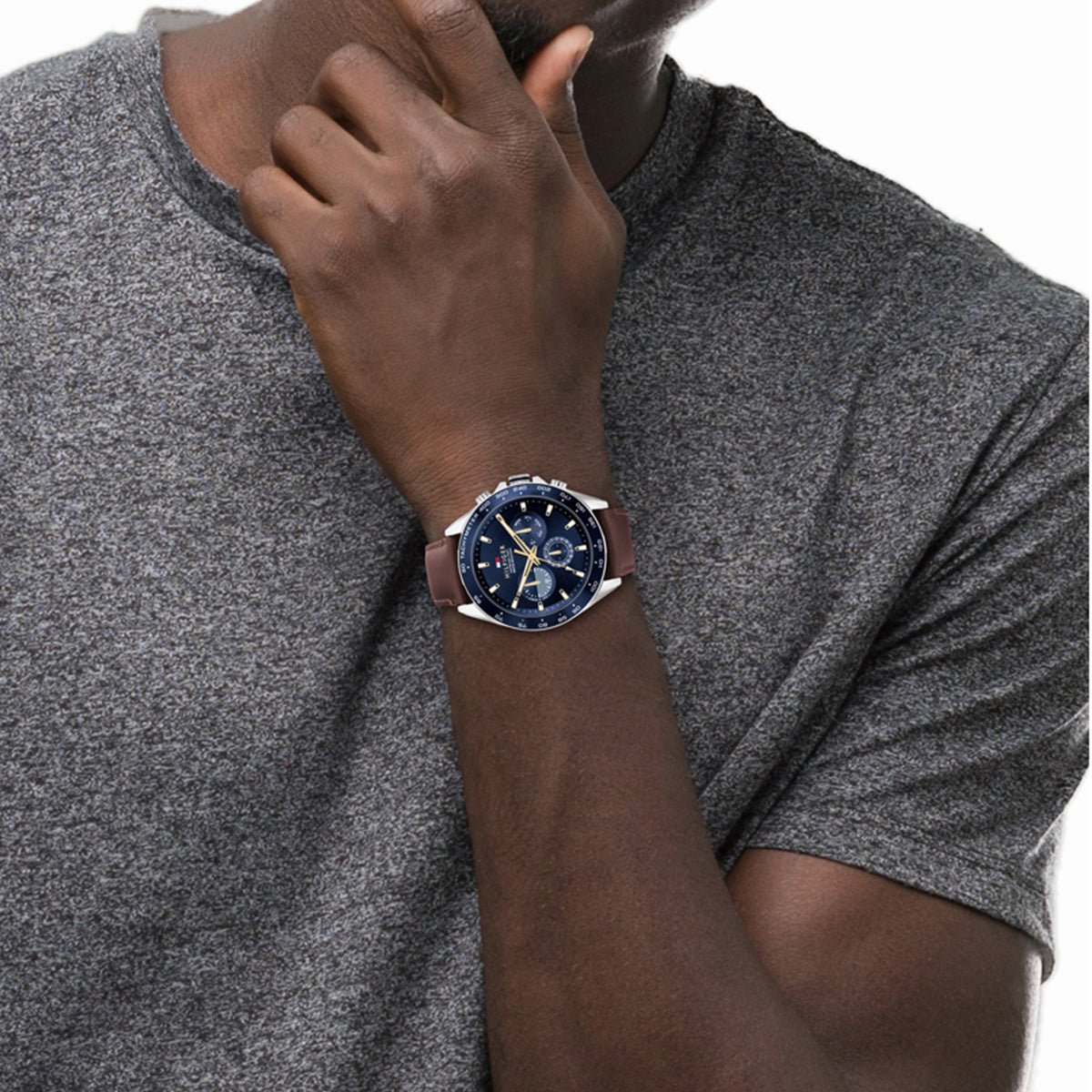 Fine Sport. Make every moment count. Thanks to precision multi function – you’ll always be on time. Sunray dial with dimensional sub-eyes and pops of branded colors throughout. Integrated link bracelets and leather straps. 46MM Multifunction movement: 24-Hour (9H), date (6H), and weekday sub-eyes (3H)