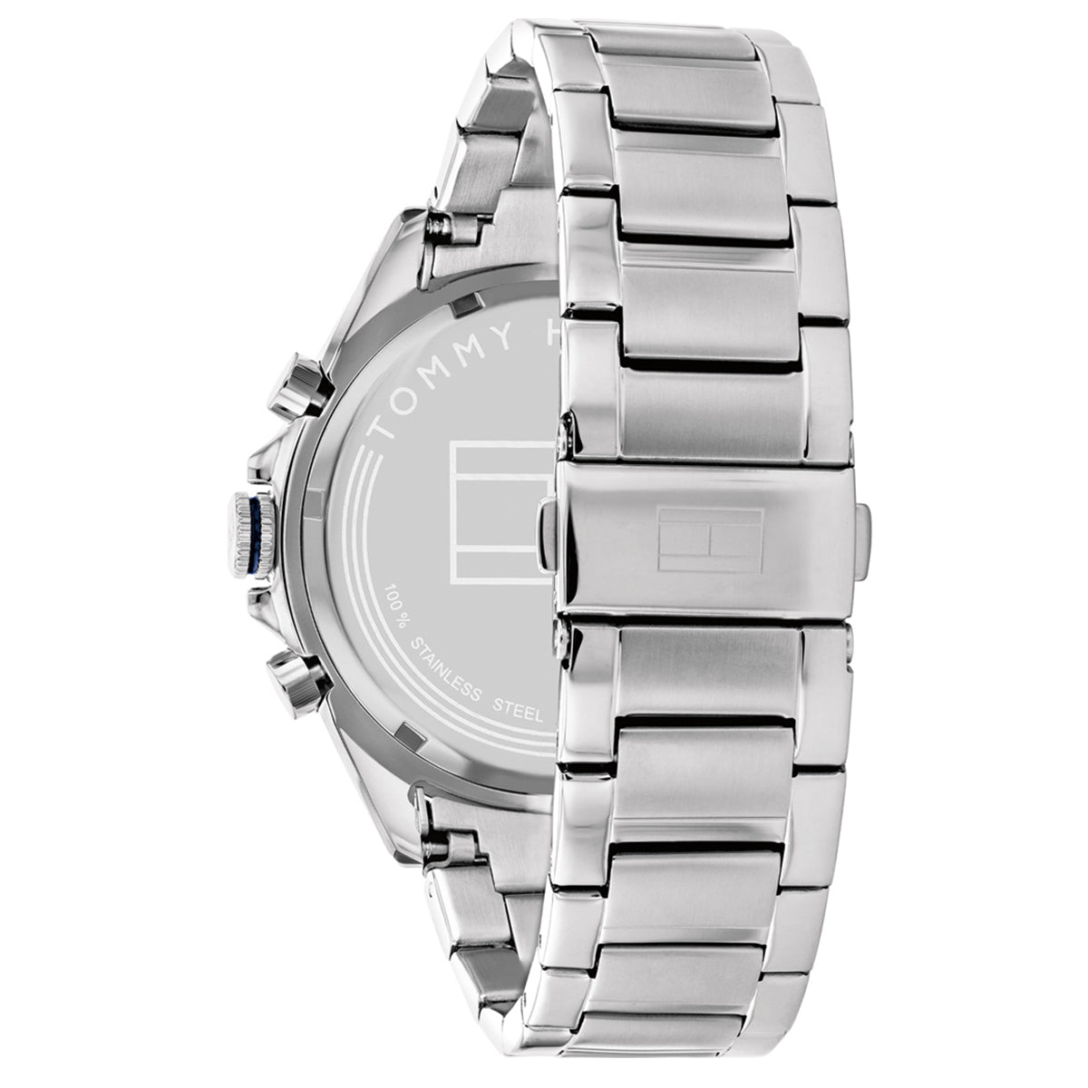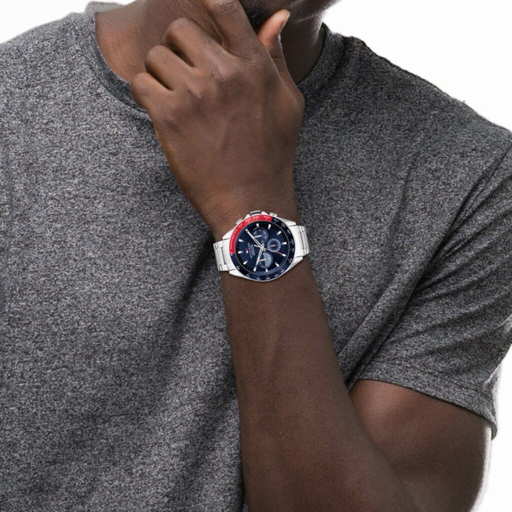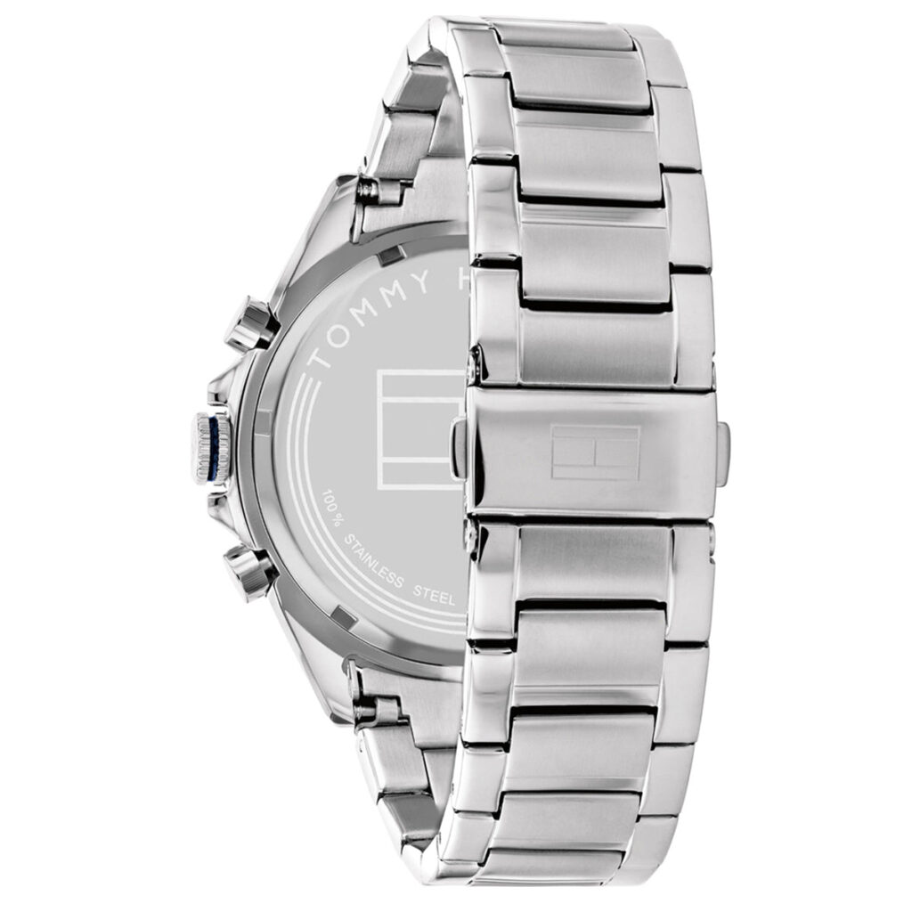 Men’s Chronograph Watch From the Owen Collection By Tommy Hilfiger. Chronograph Watch With Round Case Of Size 46Mm Of Silver Color Made Of Silver Steel. The dial is blue. The glass is mineral. The strap is in silver-colored steel. Functions: Multifunction. The Resistance to Water is 5 Atm. The reference is 1791968.