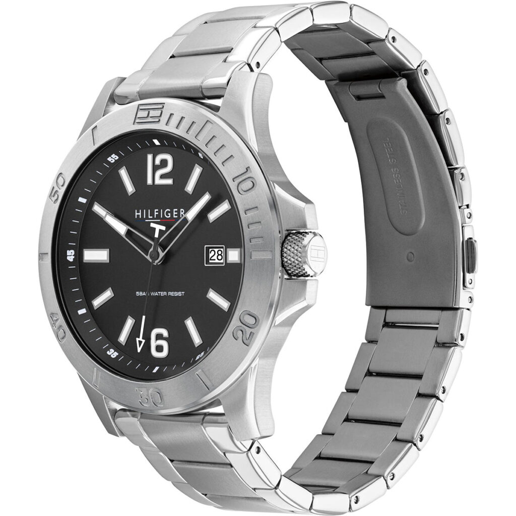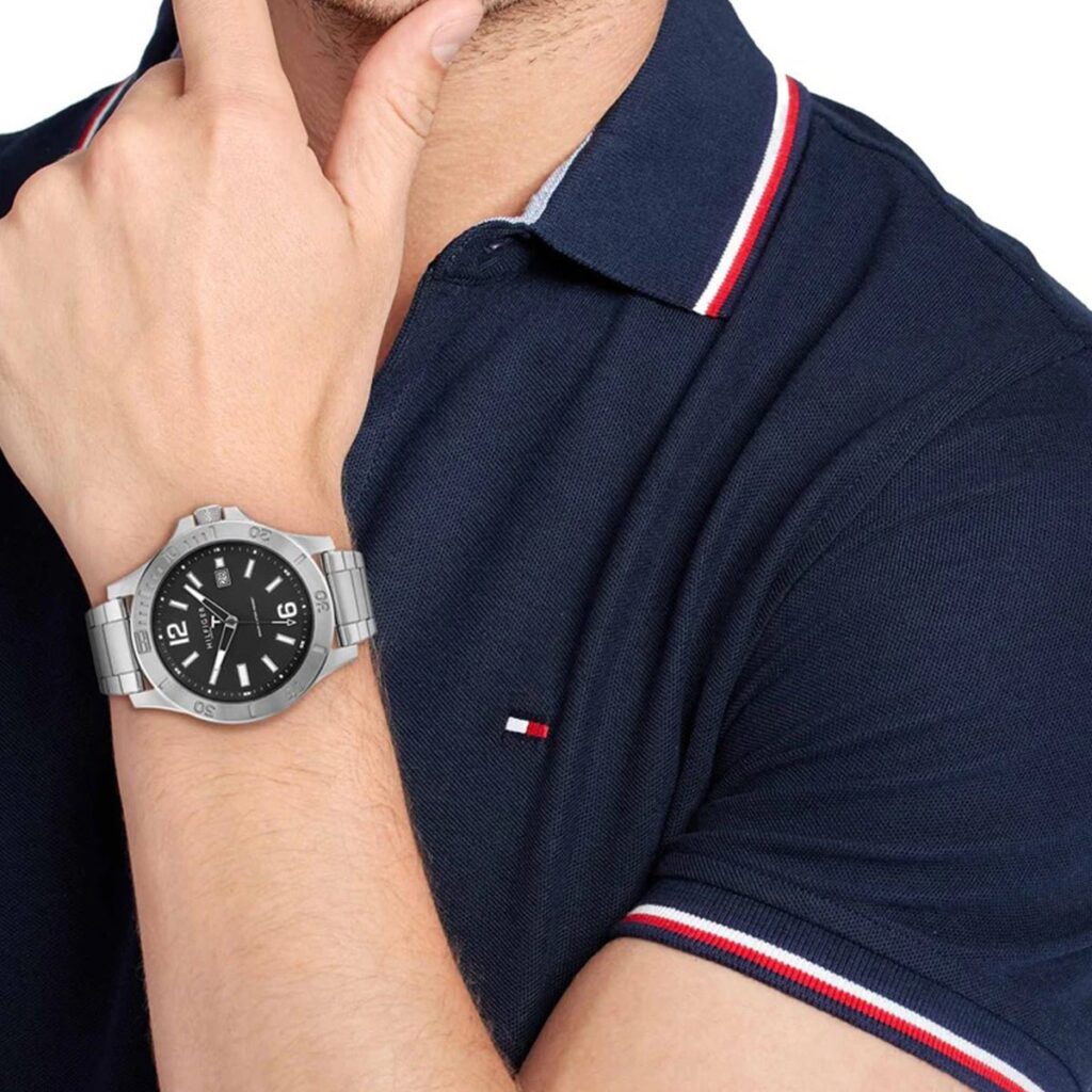 Tommy Hilfiger Ryan 179.1995 is an amazing and very impressive Gents watch from Ryan collection. Material of the case is Stainless Steel and the Silver dial gives the watch that unique look. This model has got 50 meters water resistance – it can be submerged in water for periods, so can be used for swimming and fishing. It is not recommended for high impact water sports.Â