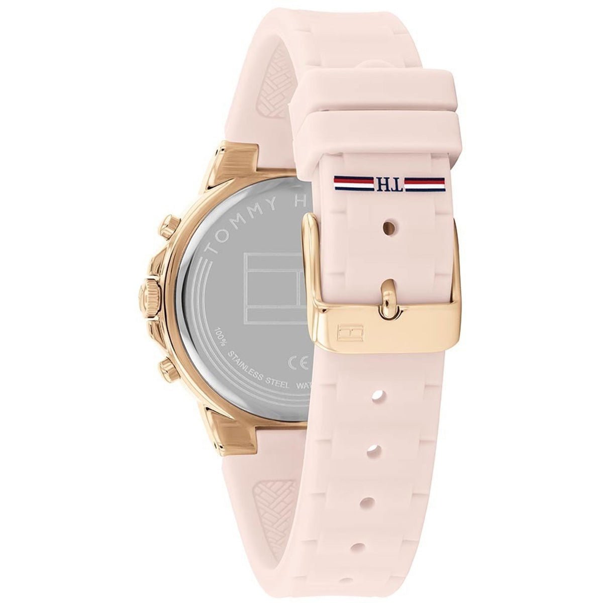 Sporty with an attitude. This collection features a 38MM case available in stainless steel, carnation gold, and gold plated finishes. Stones in the bezel provide an elegant twist on this sporty style. A fan textured dial with iconic elements is paired with integrated and brushed bracelets and silicone straps. 5 ATM/ 50 Meters.