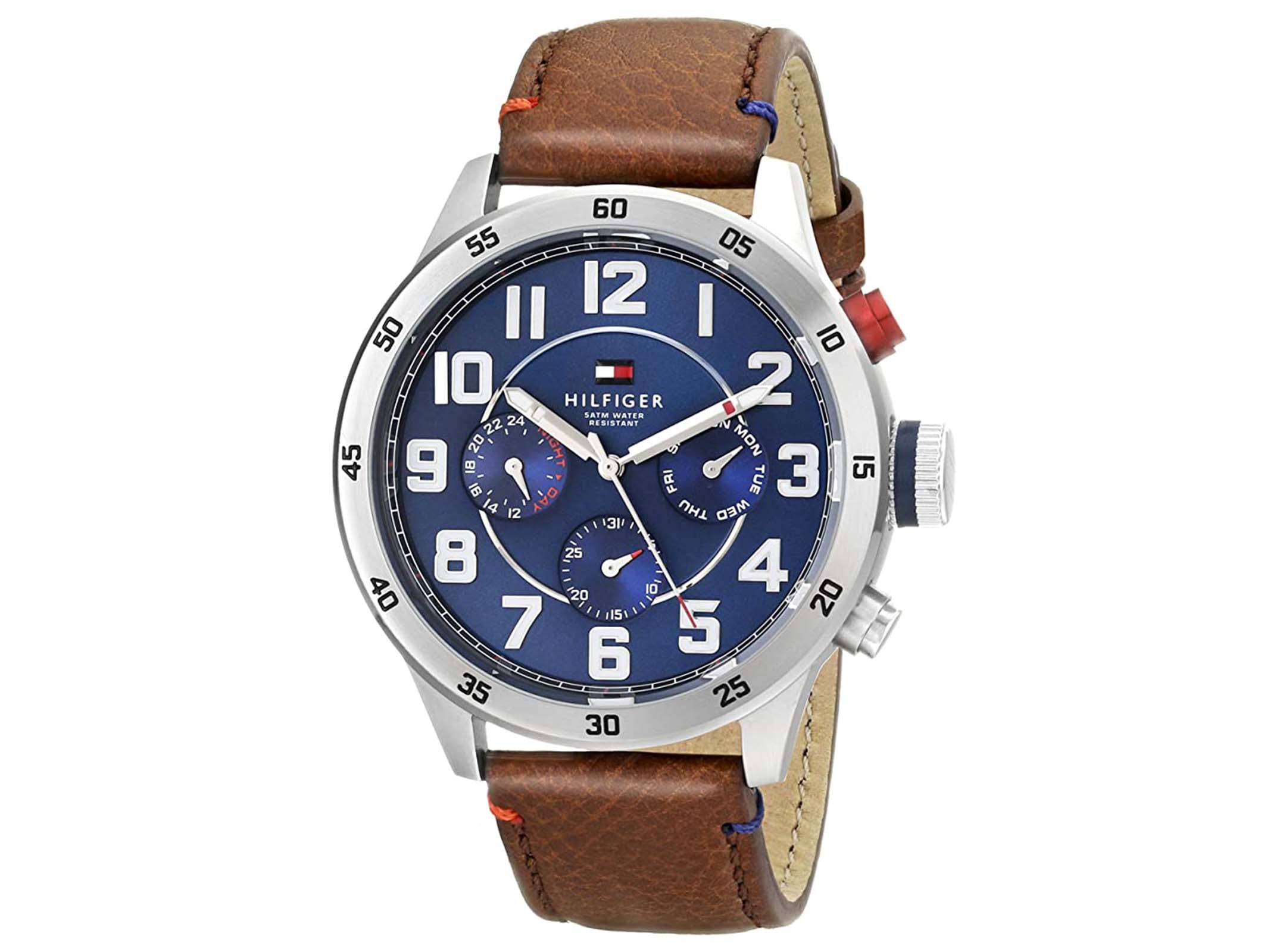 Tommy Hilfiger Trent 1791066 is a functional and special Gents watch. Case is made out of Stainless Steel while the dial colour is Dark Blue. The features of the watch include (among others) a date function. This model has got 50 metres water resistancy – it can be submerged in water for periods, so can be used for swimming and fishing. It is not reccomended for high impact water sports.