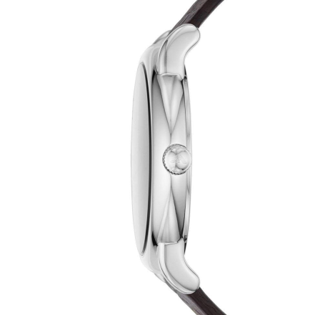 It features a brown textured leather strap, a polished stainless steel case and has a light brown with three hand movement and date window dial. The AR11096 comes with an official Emporio Armani Watches 2 year guarantee.