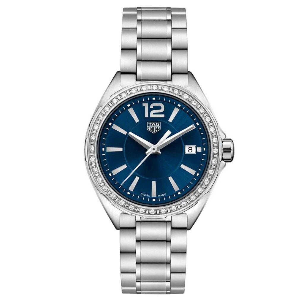 We love the pairing of a bright blue dial and glittering diamonds in this stunning TAG Heuer Formula 1 ladies watch. It’s perfect for adding just the right amount of sparkle to every occasion.