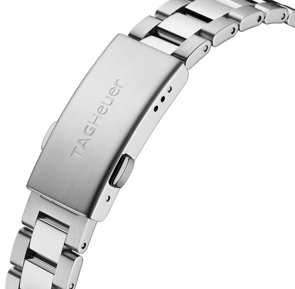 这款TAG Heuer Aquaracer石英腕表配备60分钟单向旋转表圈和精钢表壳,尺寸仅为27毫米,精致小巧。腕表采用防反射处理的平面蓝宝石水晶玻璃表镜、抛光旋入式表冠和精钢旋入式表底盖。这款TAG Heuer Aquaracer女士腕表的表盘堪称点睛之笔,采用白色珍珠贝母材质,并饰以精美的日期显示窗(位于3点钟位置)、钻石点状时标以及涂覆Superluminova夜光涂层的刻面时针和分针。腕表搭载瑞士制造的石英机芯,该机芯被誉为最可靠、最精准的机芯之一,每月误差仅为几秒,确保近乎完美的精准度。此外,这款TAG Heuer女士腕表还配备精钢表链和带有双重安全按钮及潜水延长功能的折叠式表扣,更添优雅气质。
